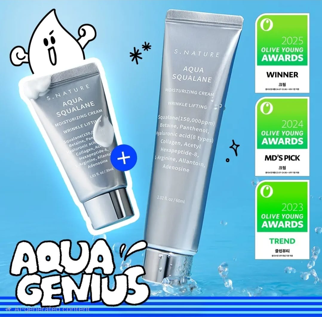 Give your skin intense nourishment and long-lasting hydration with S.NATURE Aqua Squalane Moisturizing Cream, a best-selling moisturizer specially designed for dry, dehydrated, and sensitive skin. Enriched with an impressive 150,000ppm Squalane, this cream helps soften rough skin, smooth texture, and strengthen the skin barrier while supporting oil-water balance for a healthier, refined complexion.